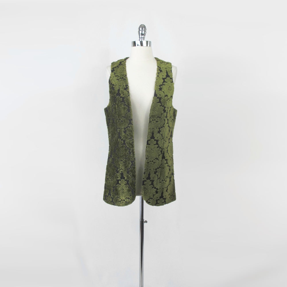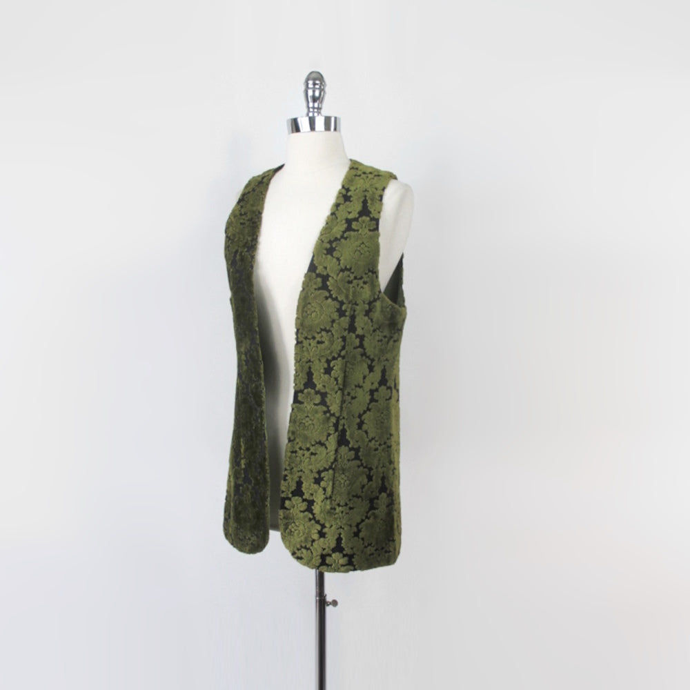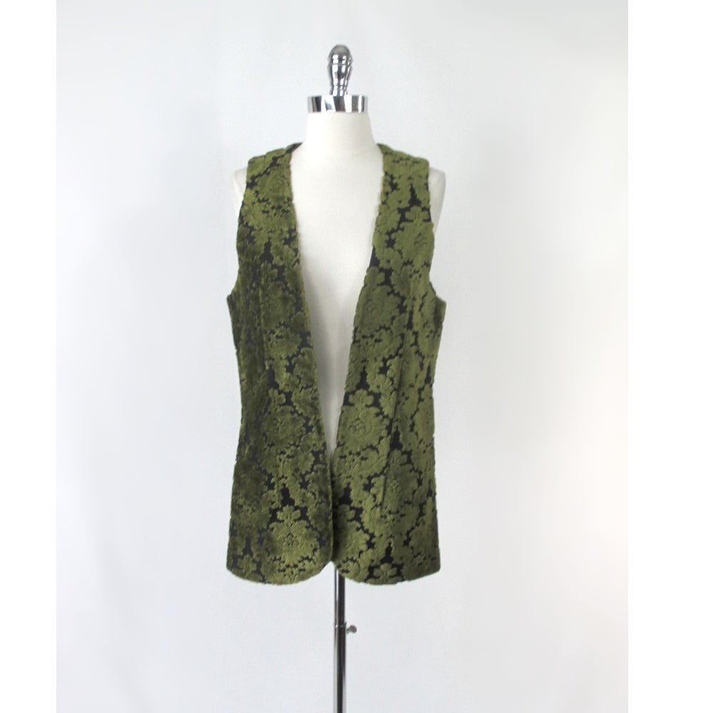Vintage 60s Green Tapestry Velvet Hippie Vest M | L