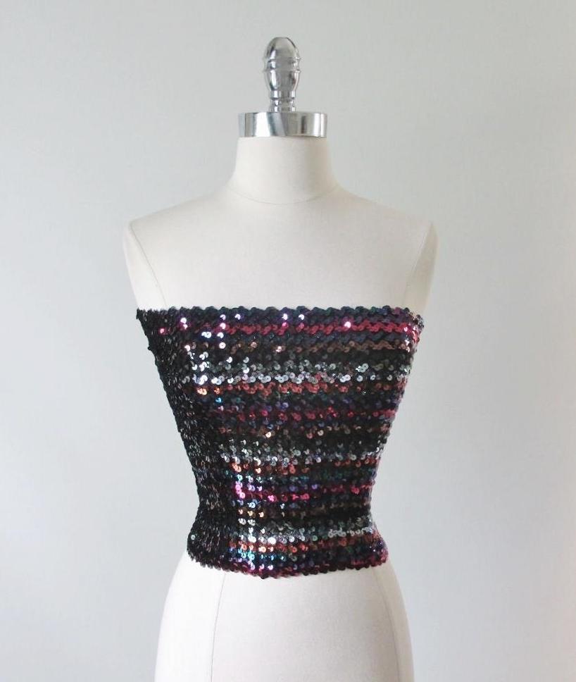 Vintage 70's Jewel Tone Sequins Disco Tube Top