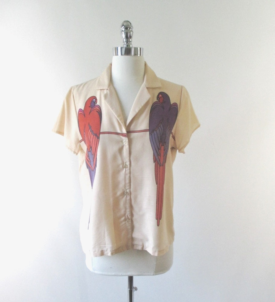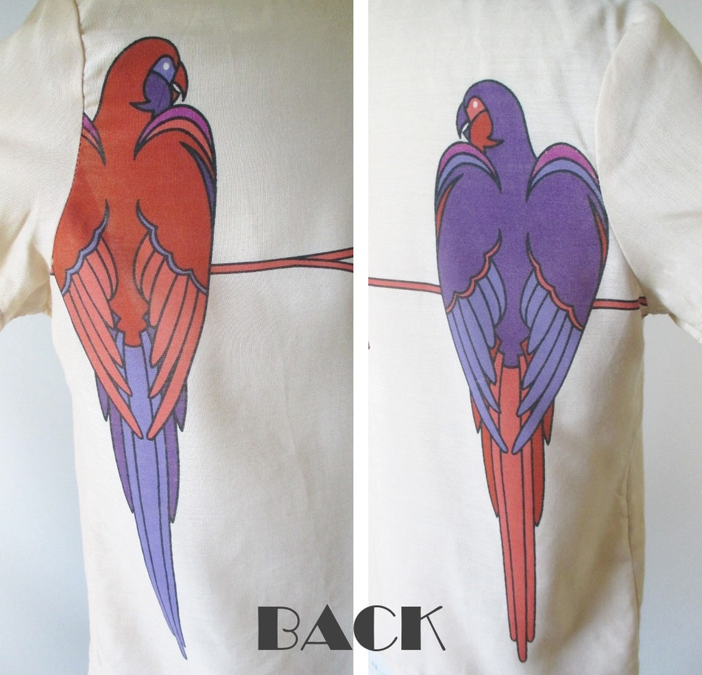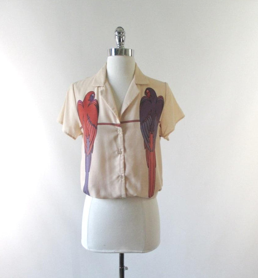 Vintage 70's Macaw Parrot Graphic Button up shirt Blouse / Top