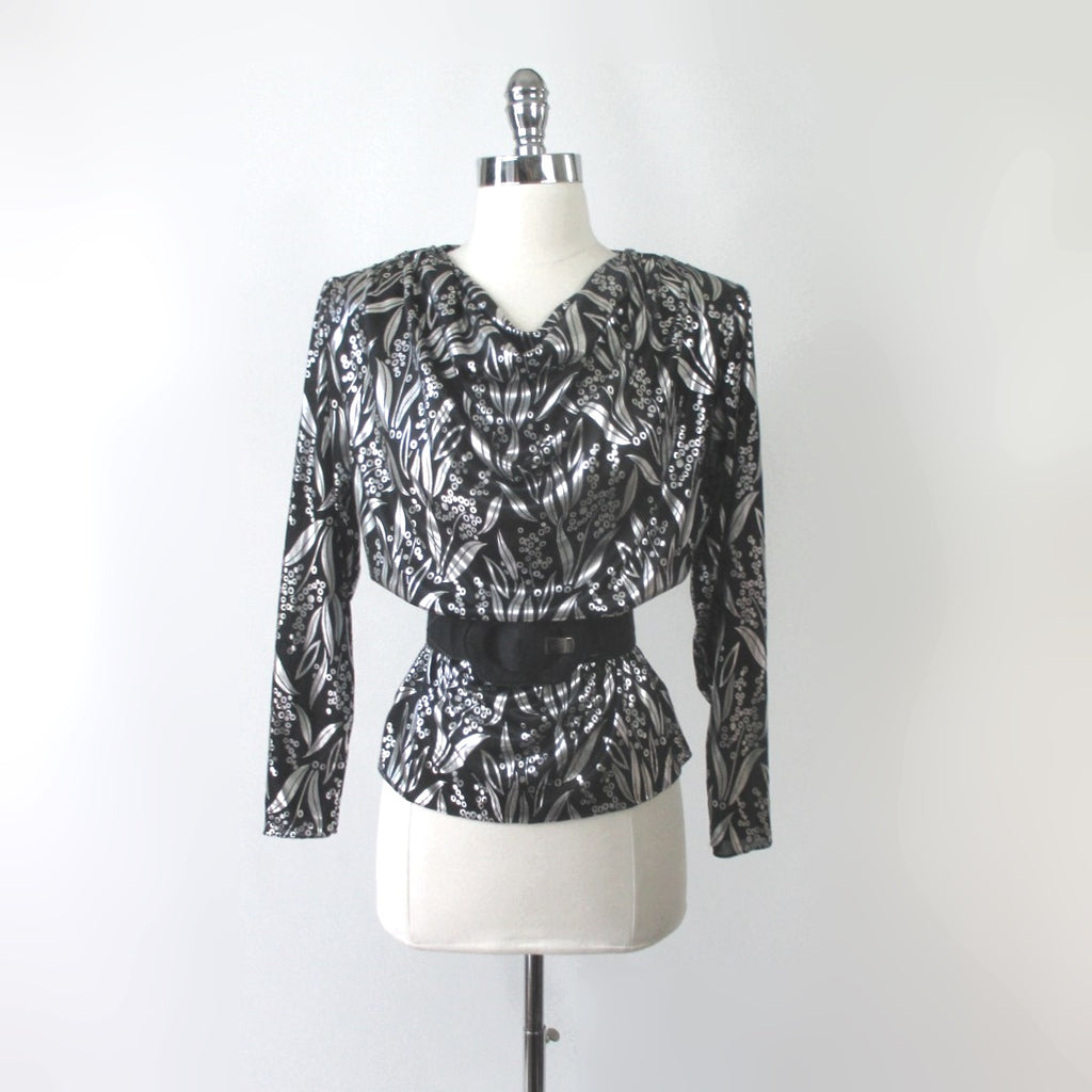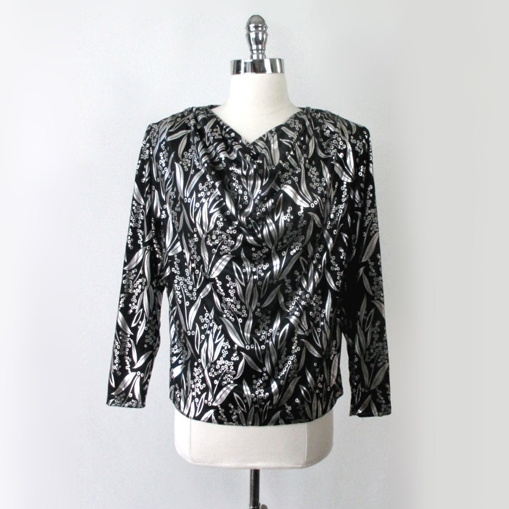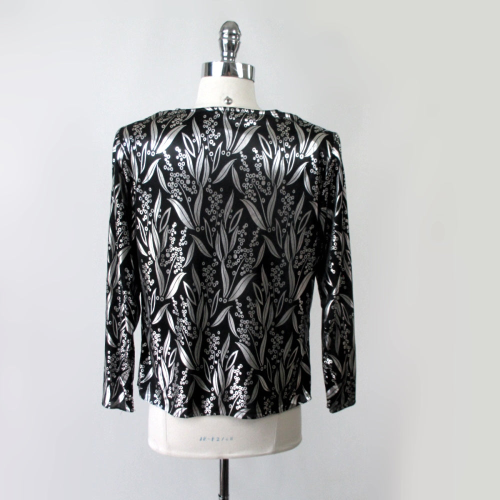 Vintage 80s Silver Shimmer Evening Party Top Blouse M