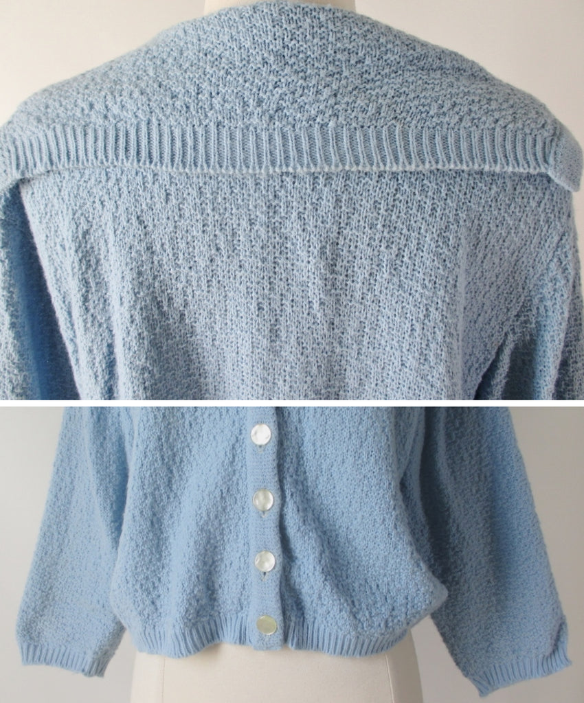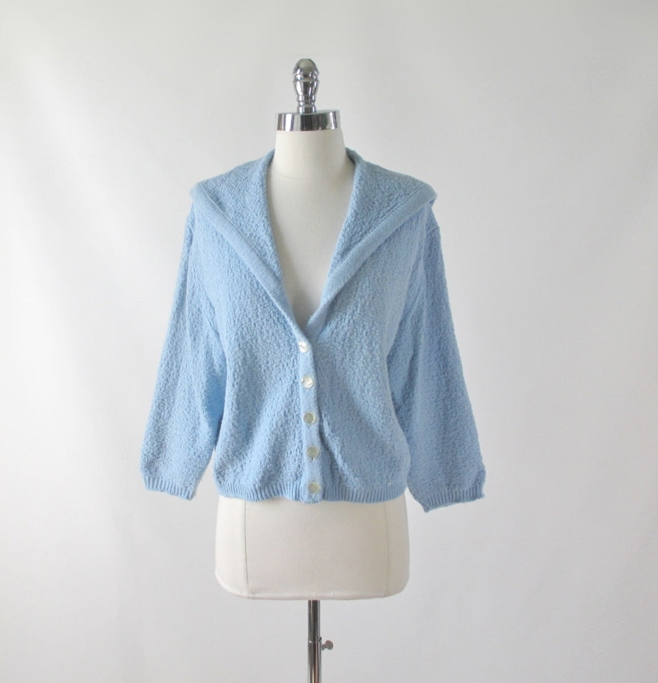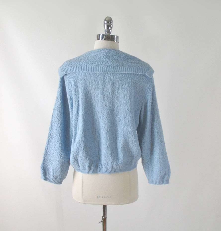 Vintage 60s Light Blue Nautical Cardigan Sweater L