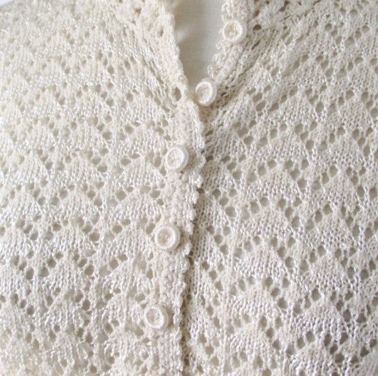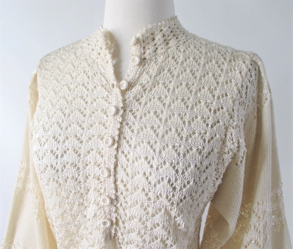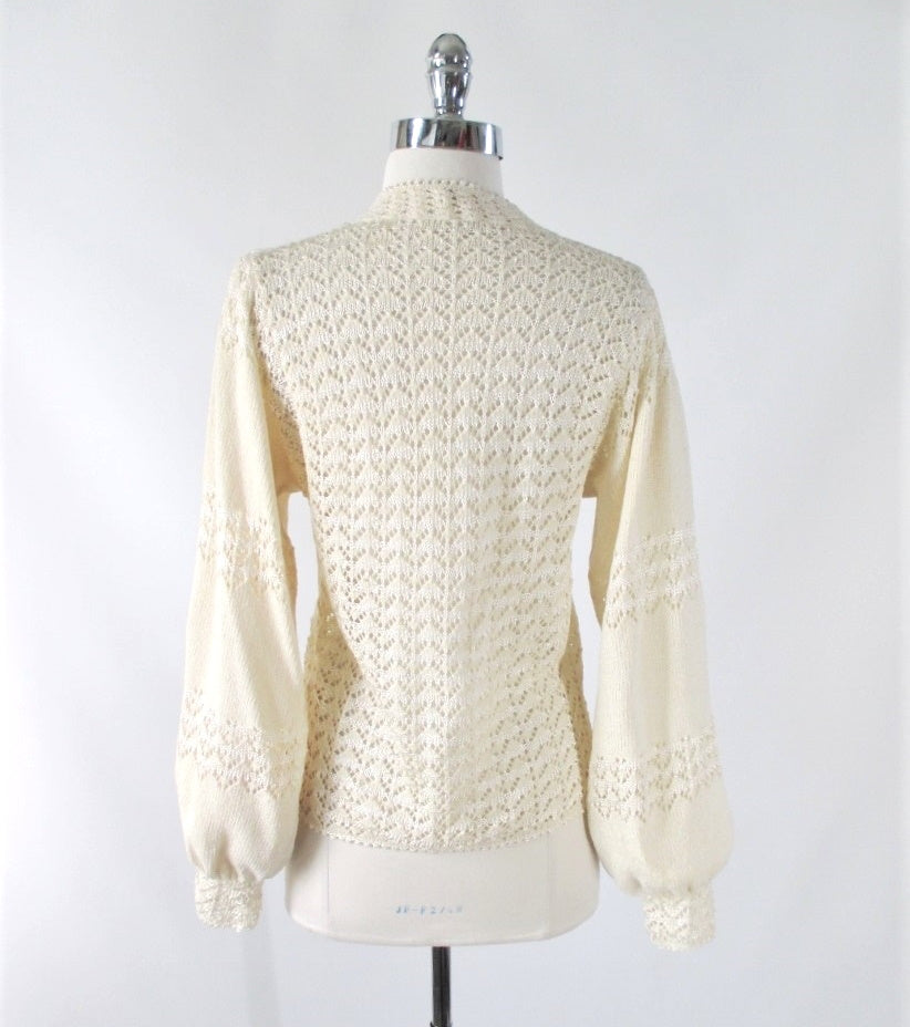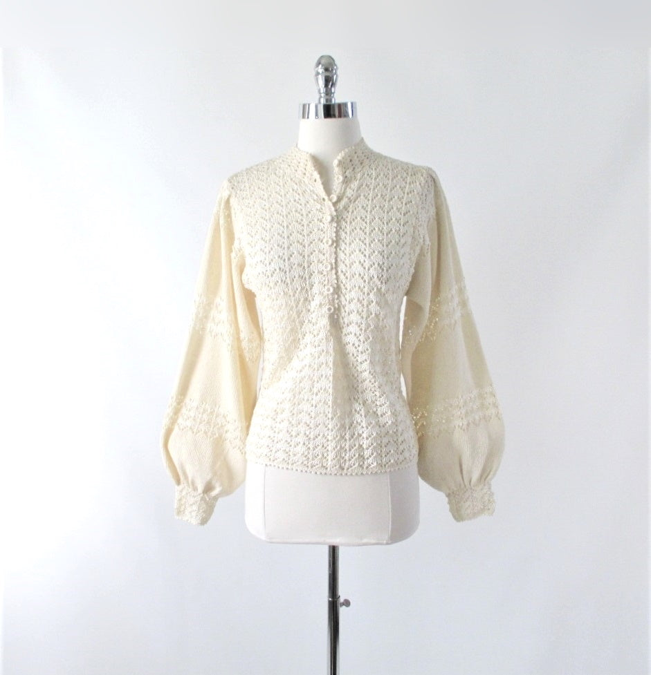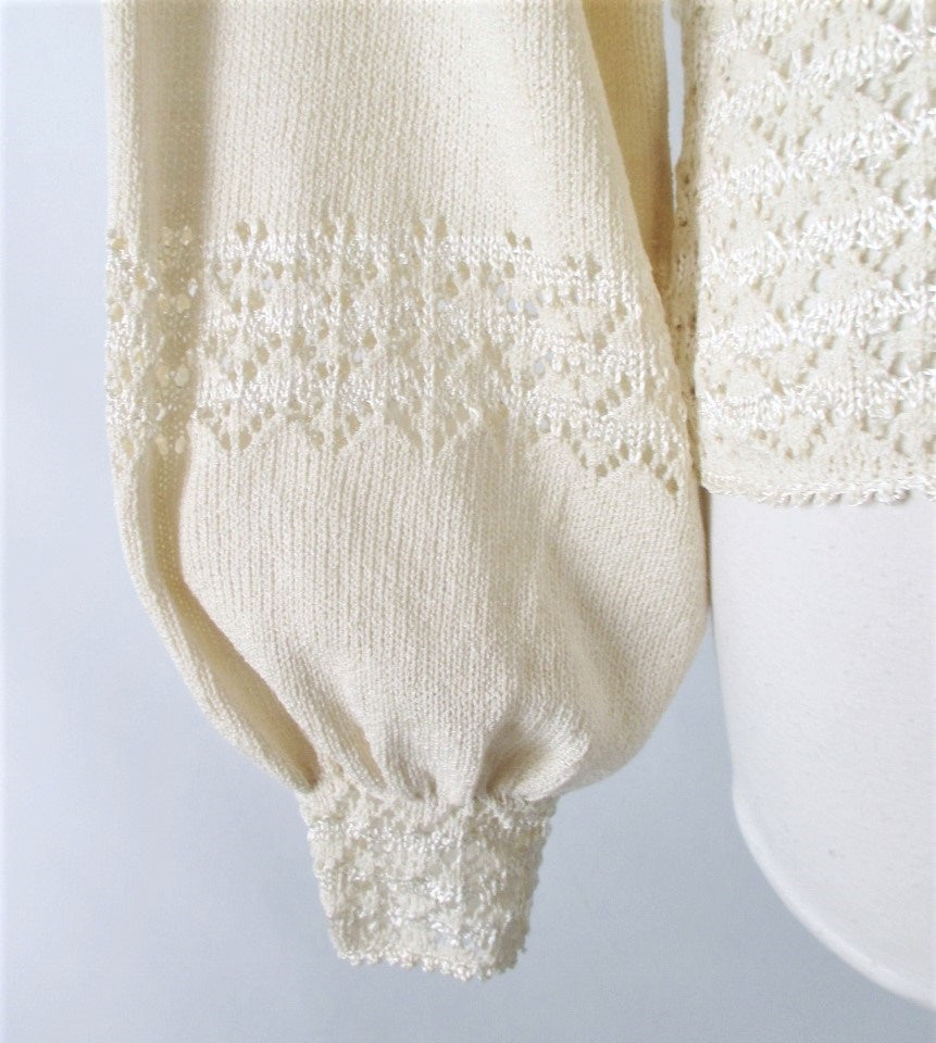 Vintage 70s Cream Chevron Knit Sweater Top S