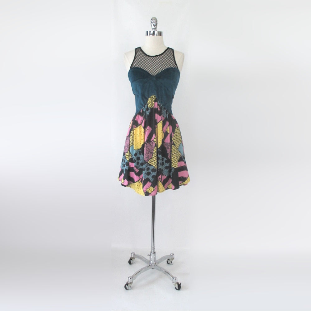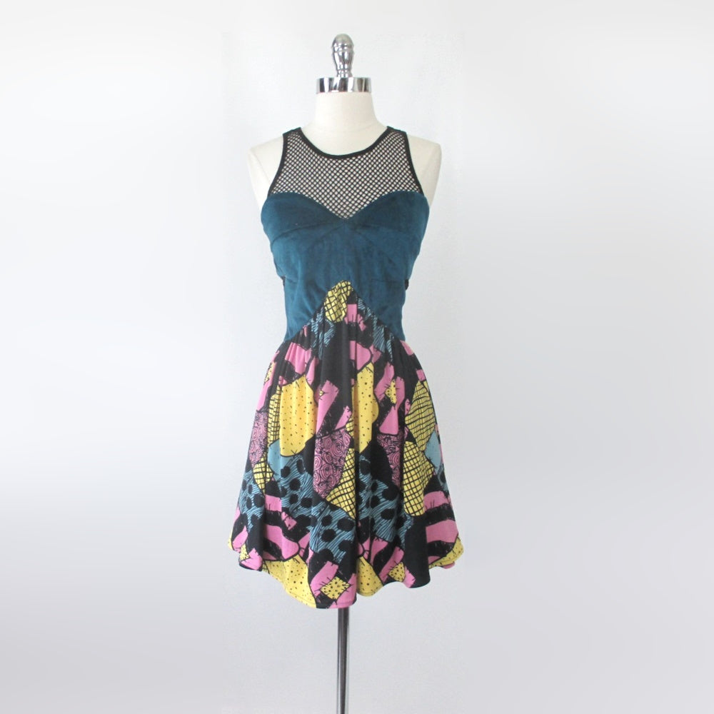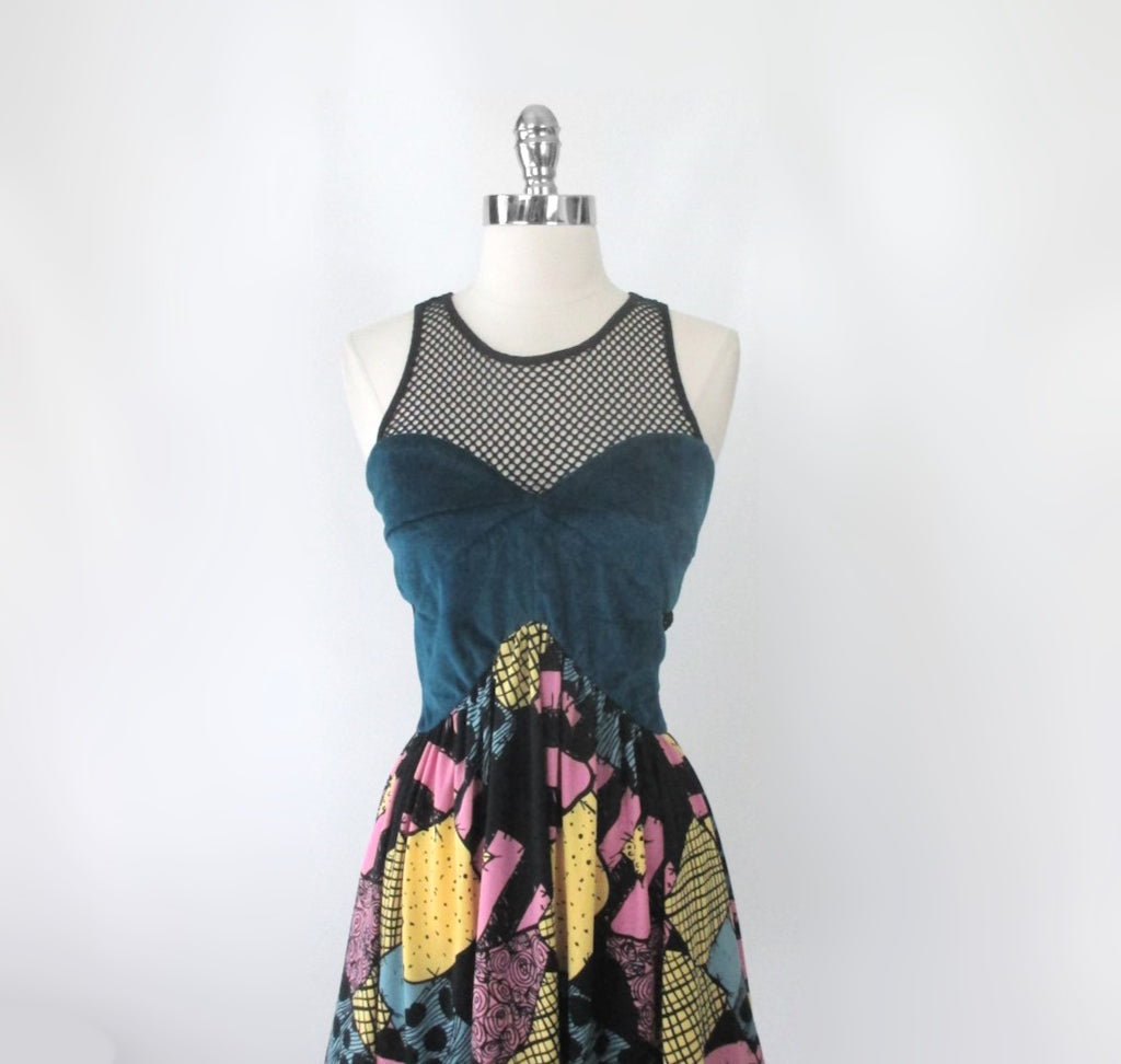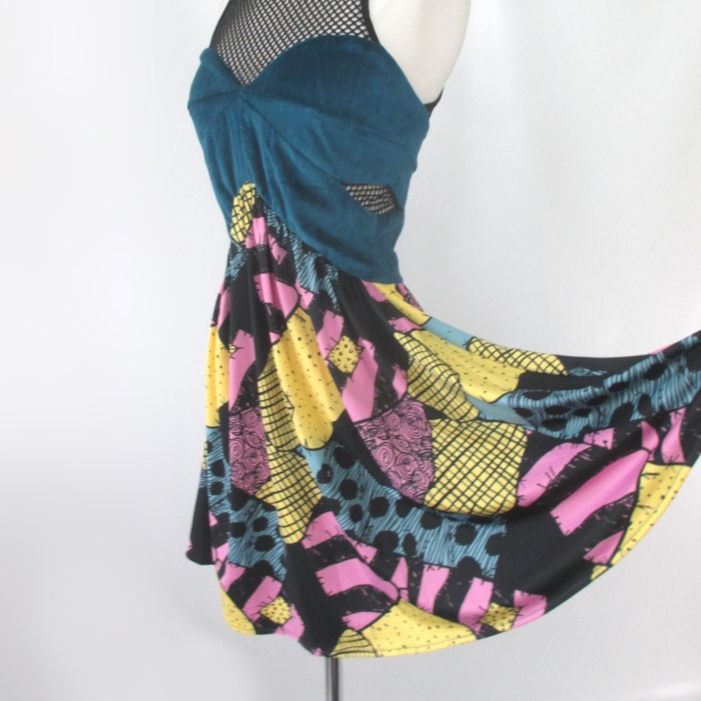 Nightmare Before Christmas Sally Fishnet Cut-Out Mini Dress S | P