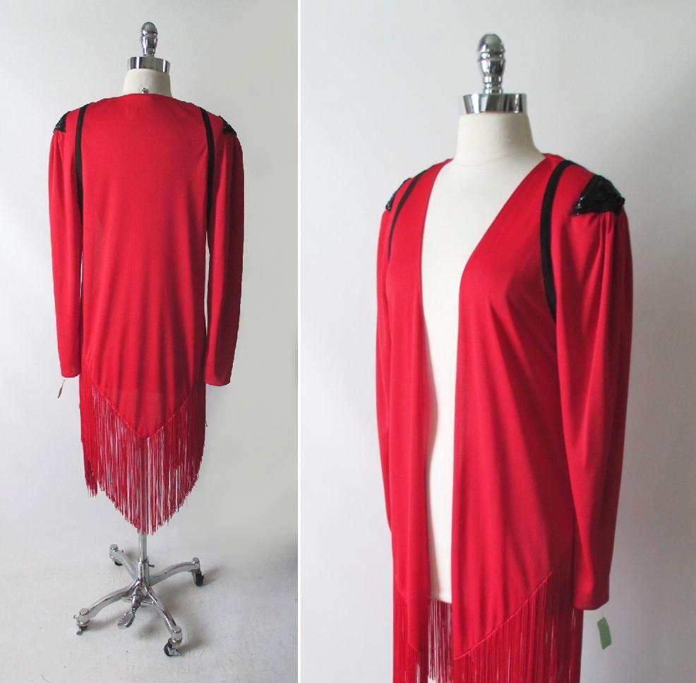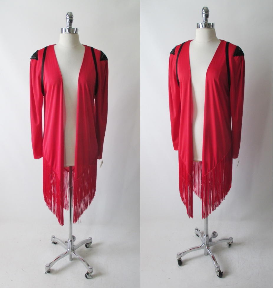 Vintage 80's Long Evening Fringe Jacket Costume S / M