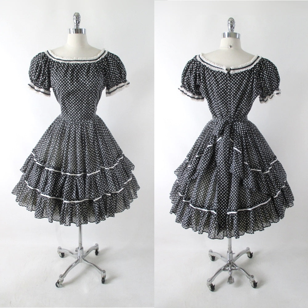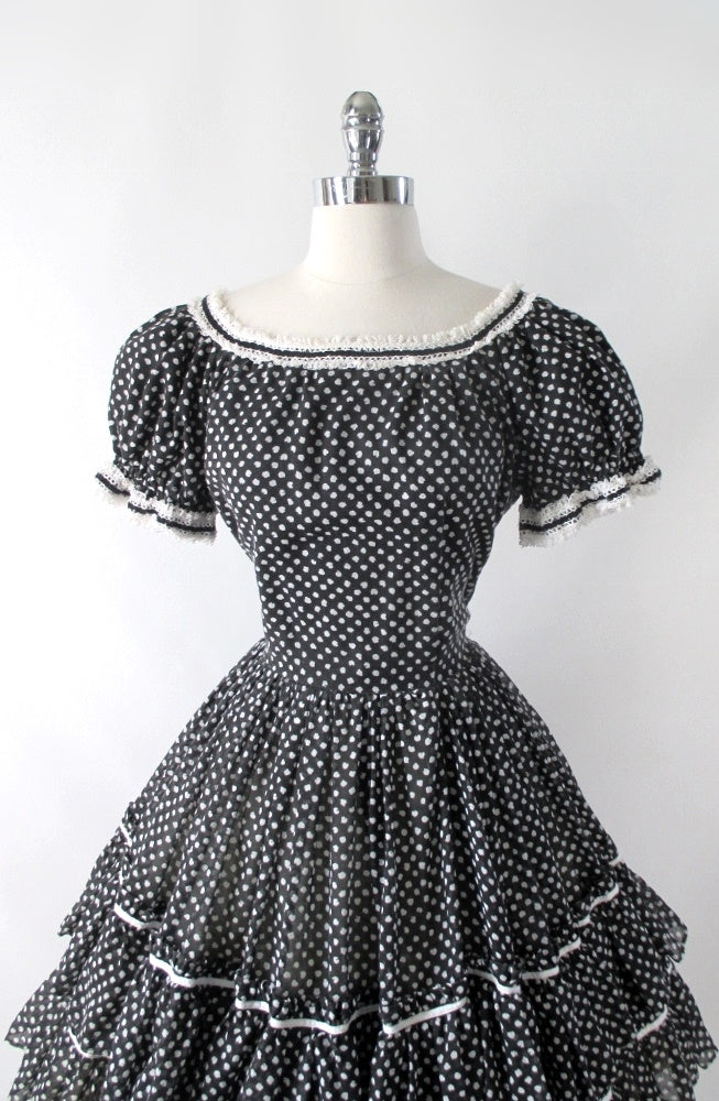 Vintage Black & White Full Circle Skirt Square Dance / Dolly Dress M