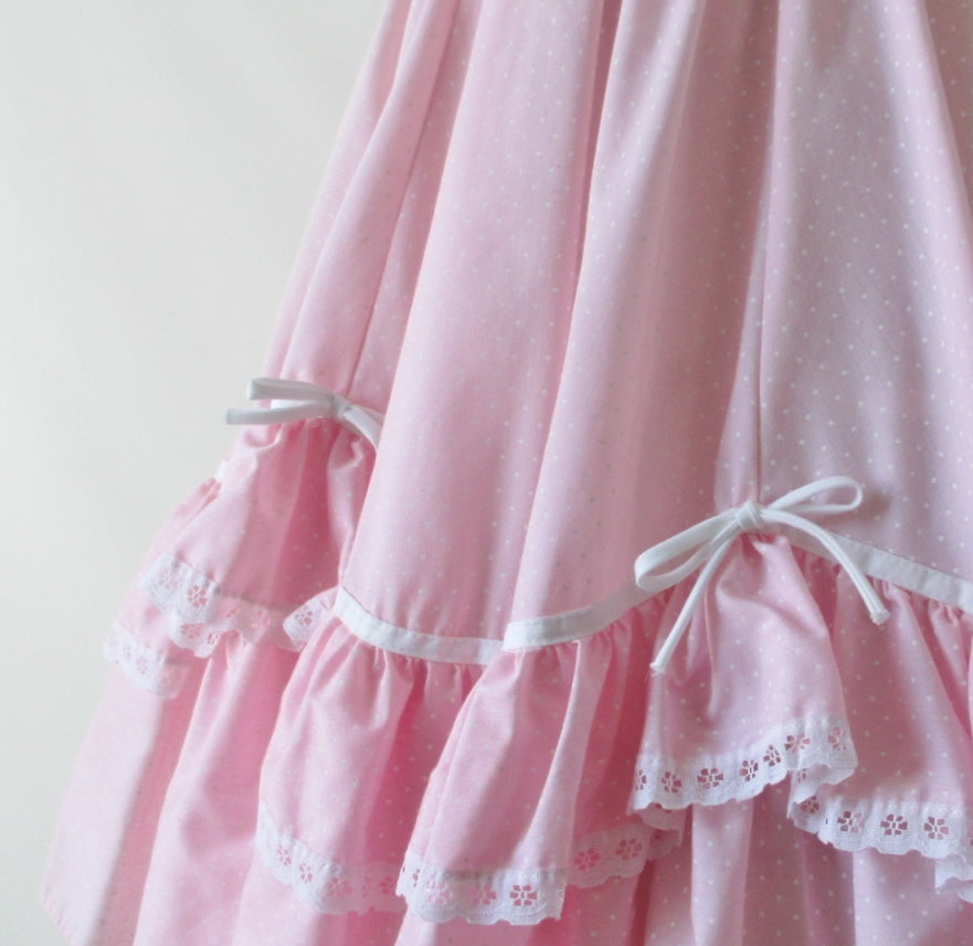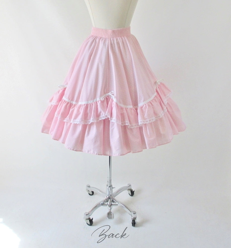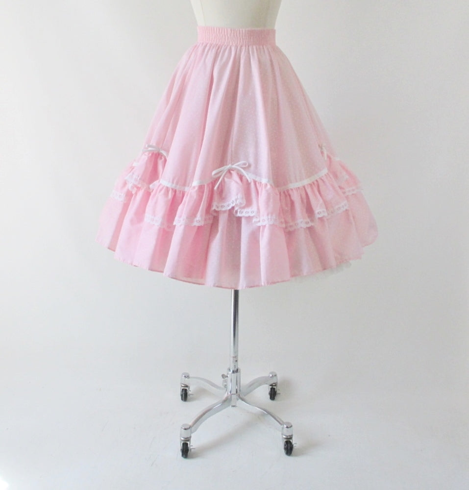 Vintage Pink Ruffle & Bows Full Circle Dolly Skirt M