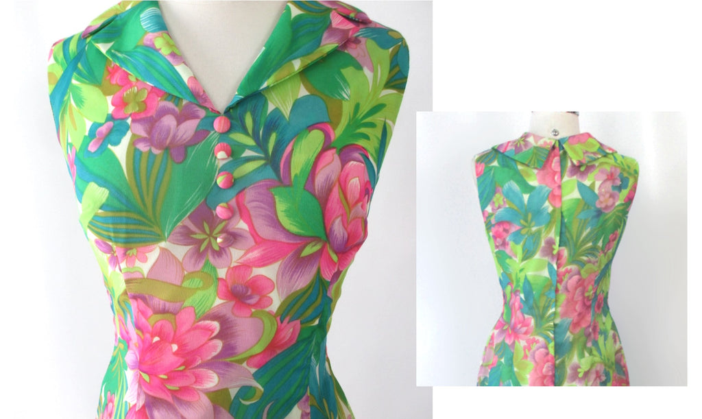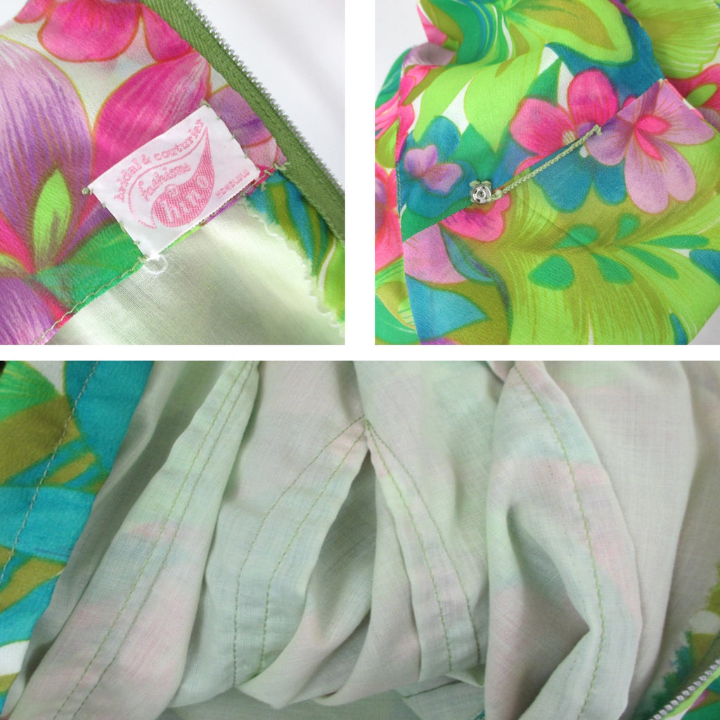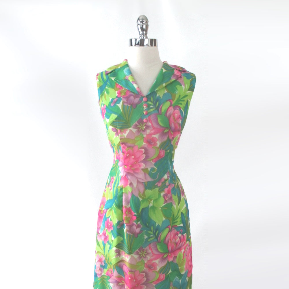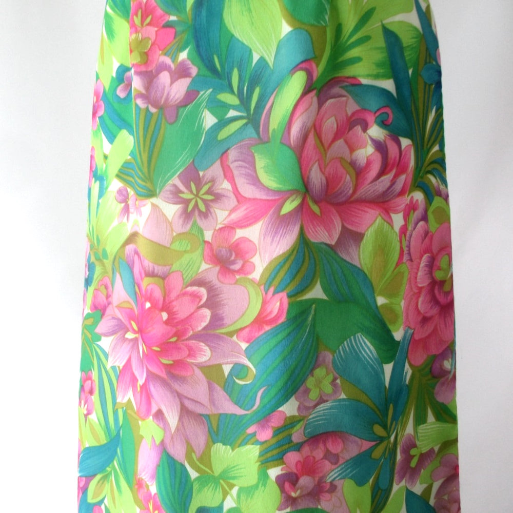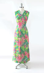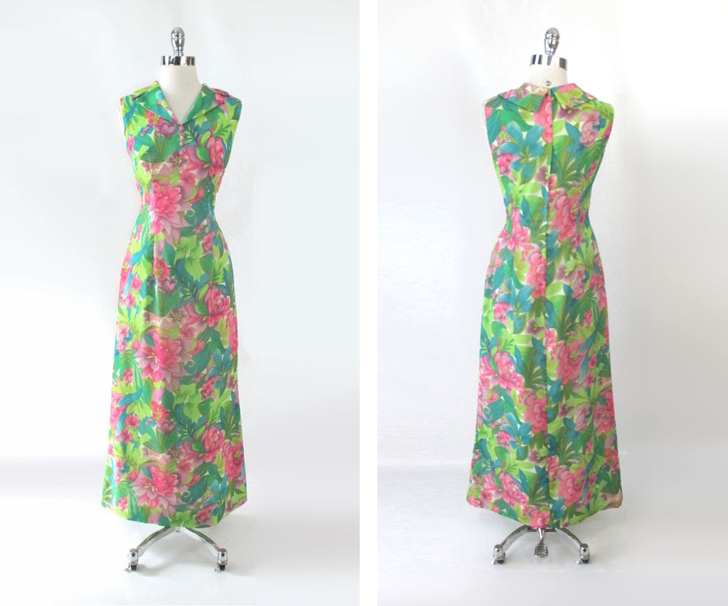 Vintage 60s Hawaiian Maxi Gown Tropical Garden Dress | S