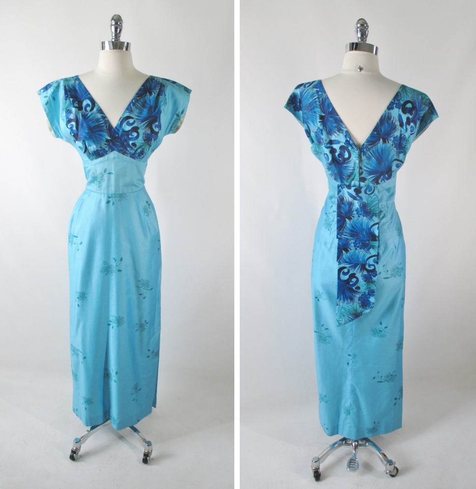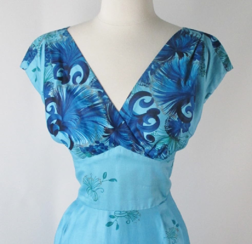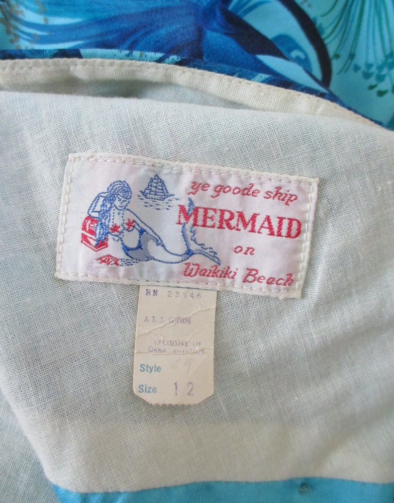 A vintage Hawaiian dress from the 60's in shades of blue