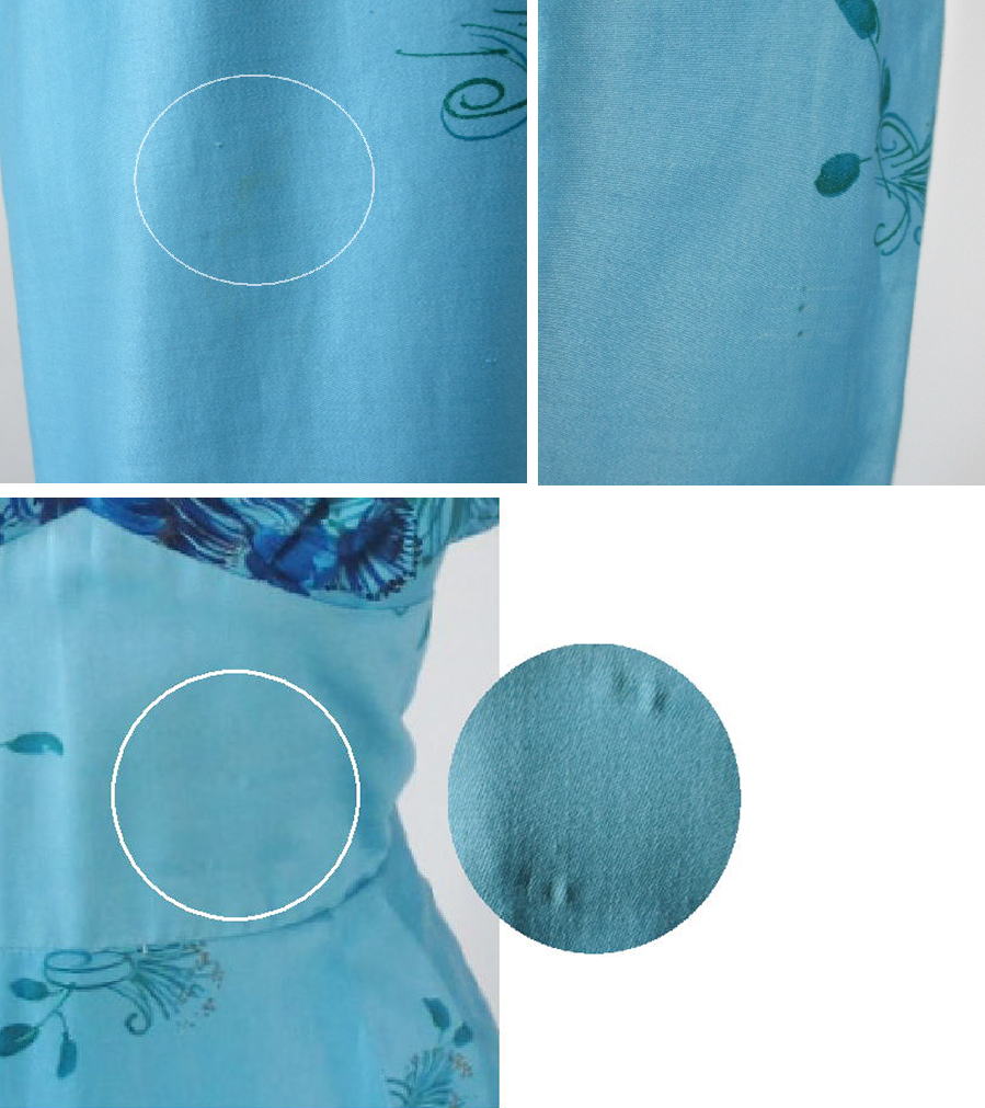 on the skirt- about 6 small, scattered picks and a thread pull