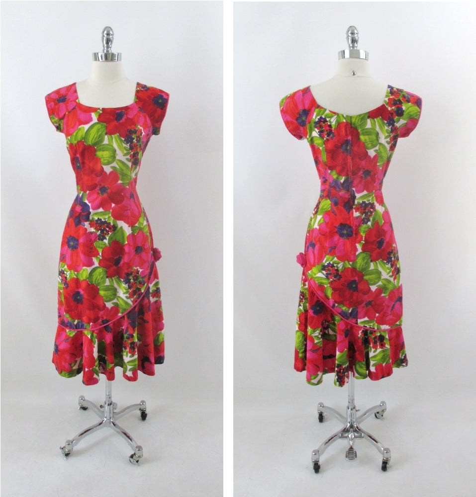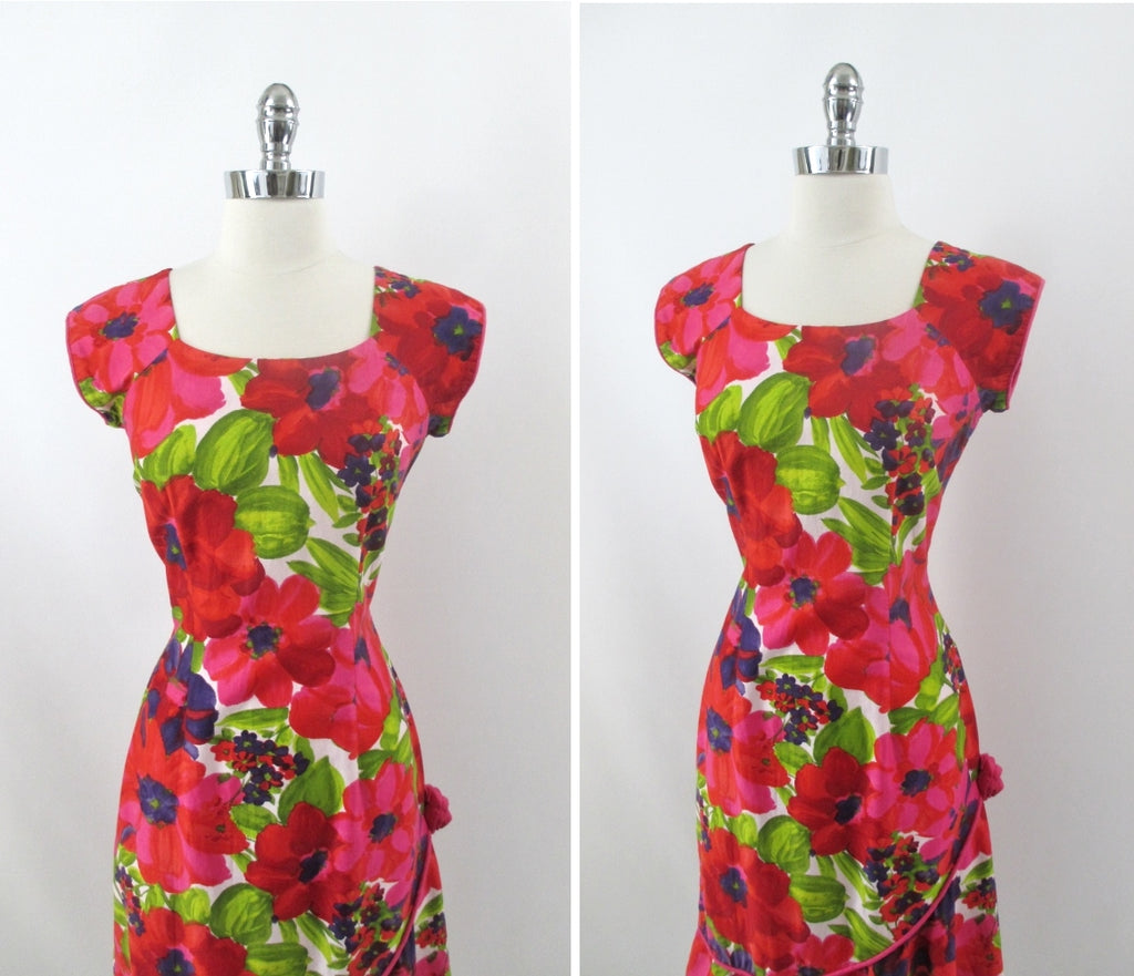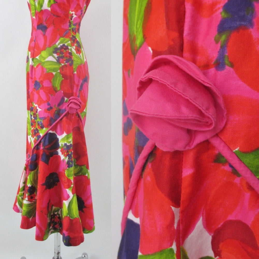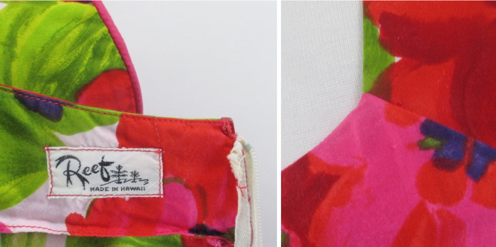 Vintage 60s Reef Ruffled Hem Hawaiian Sheath Dress M