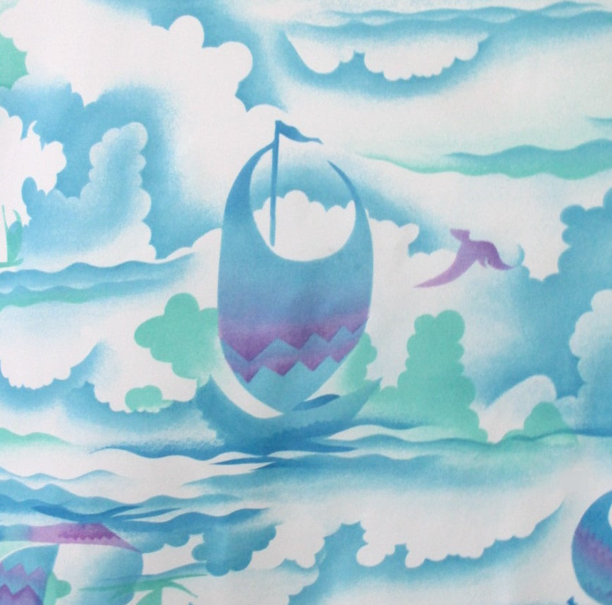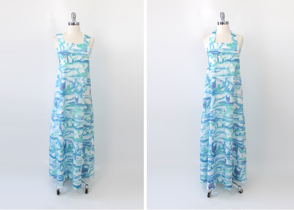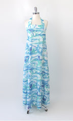 Vintage 70s Sailboats & Seagulls Hawaiian Maxi Dress XS