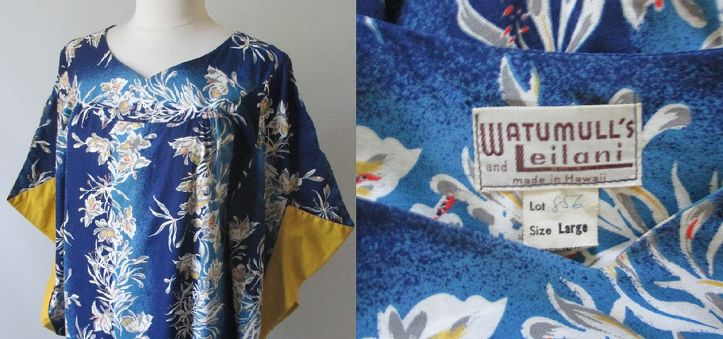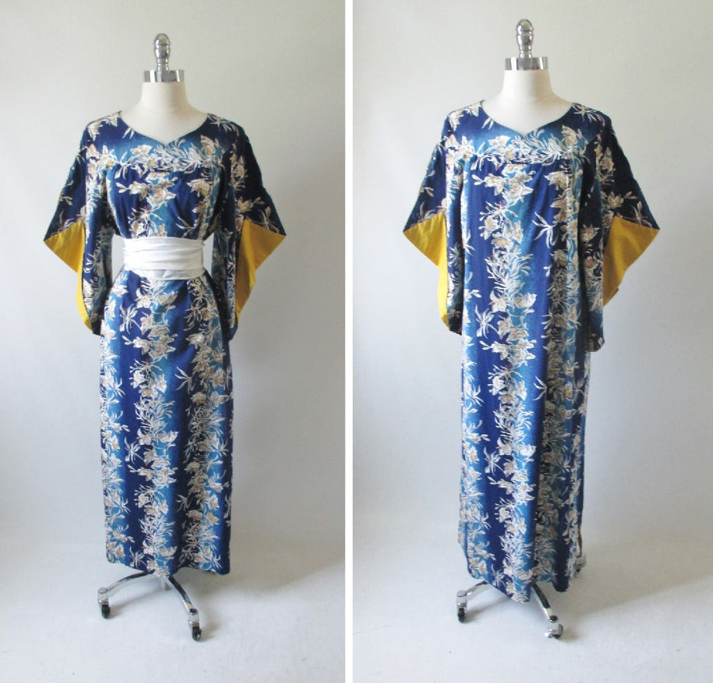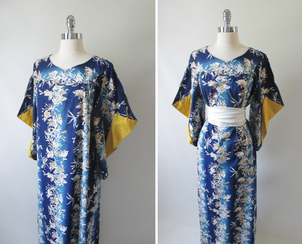 Vintage 50's Hawaiian Batwing Sleeve Mumu Dress Gown