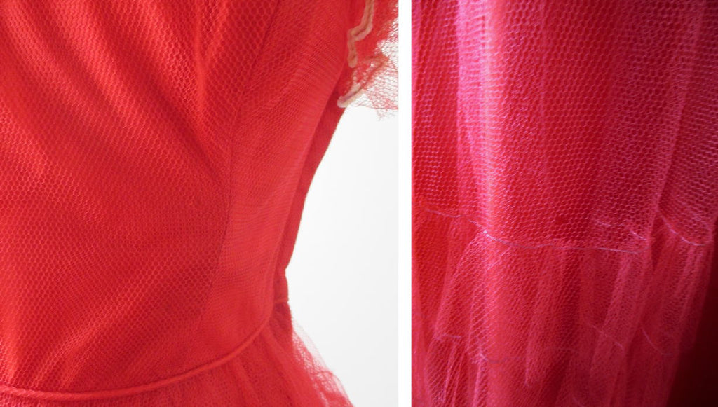• Vintage 50's Red Strapless Full Skirt Party Dress Gown XS