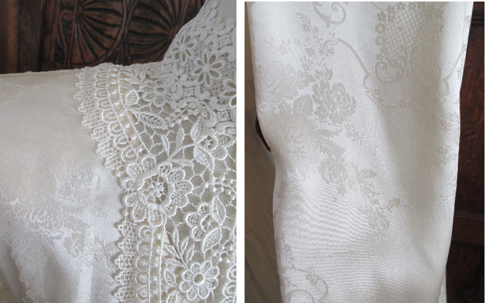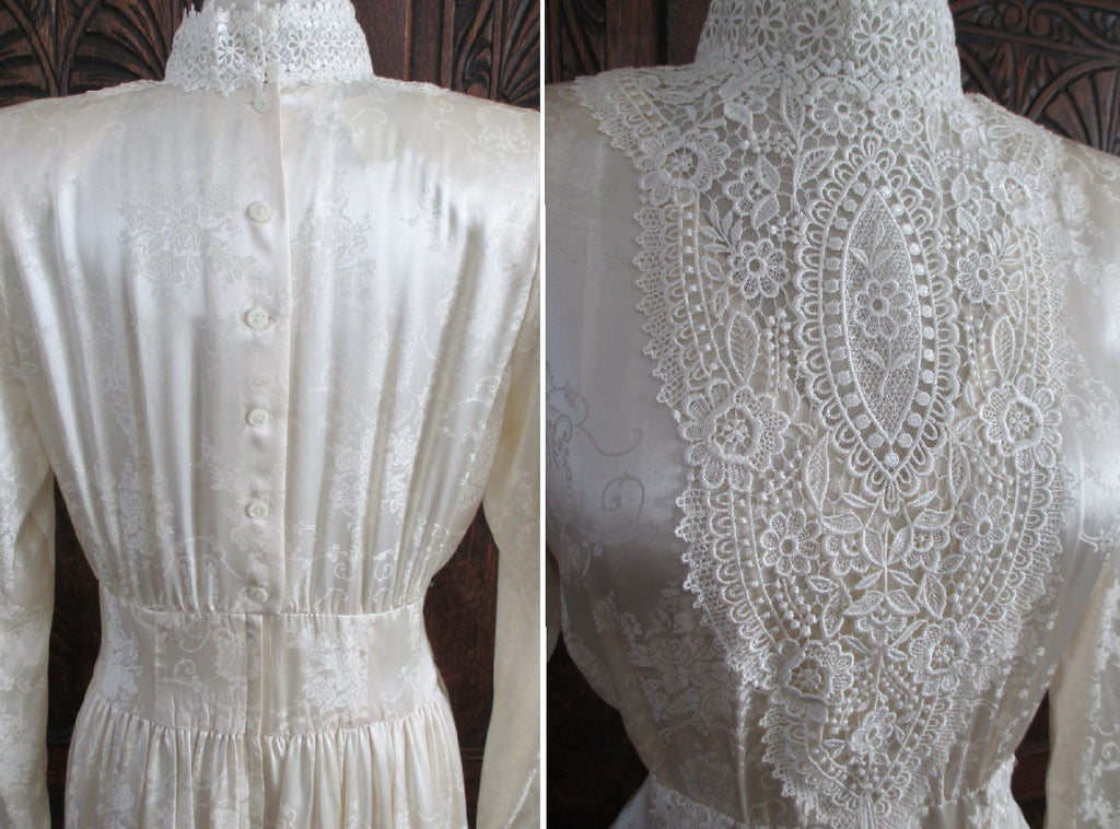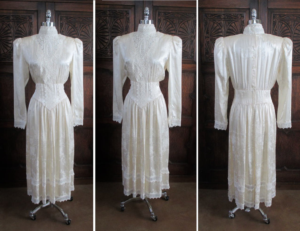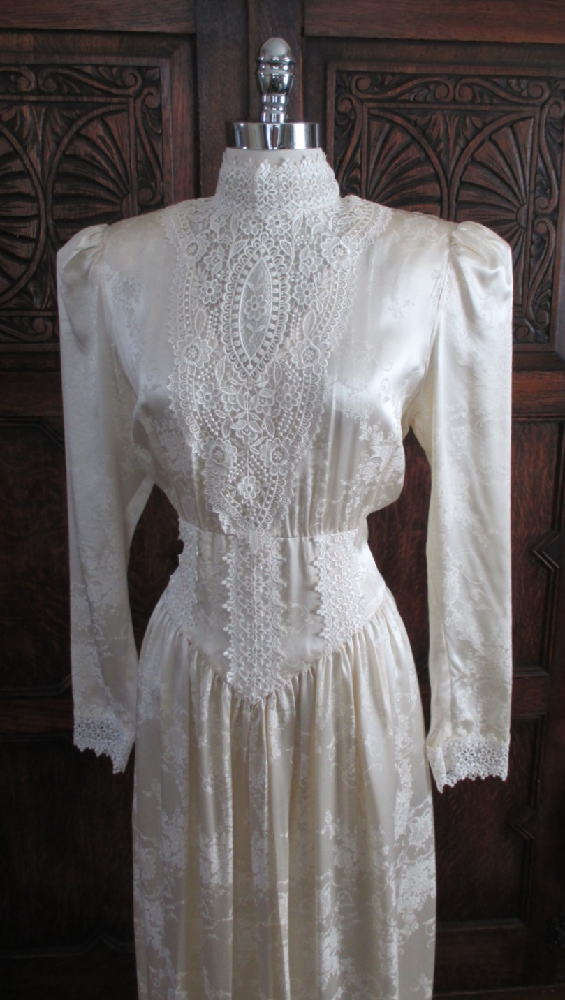A vintage 80's Gunne Sax dress in a cream damask silk
